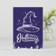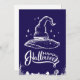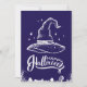Esta llamativa tarjeta de la festividad de Halloween presenta una ilustración blanca y audaz de un sombrero clásico de bruja sobre un fondo púrpura intenso. El diseño se completa con una espeluznante escena de cementerio en la parte inferior, lo que añade un toque inquietante y elegante. El mensaje "Feliz Halloween" está escrito con elegancia, lo que hace que esta tarjeta sea perfecta para enviar saludos de Halloween o para usar como pieza decorativa durante la temporada de terror. El diseño minimalista pero impactante es ideal para aquellos que aprecian la estética clásica de Halloween.
