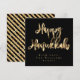 Tarjeta Festiva Feliz Hanukkah Elegant Black and Gold Look Script