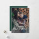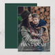 Esta sencilla y elegante tarjeta de Hanukkah dice "Feliz Hanukkah" en una mezcla de texto moderno en negrita y caligrafía clásica, sobre una superposición de foto sobre su foto familiar favorita. La parte posterior de la tarjeta es de un color verde esmeralda oscuro.