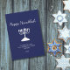 Feliz Hanukkah Blue Holiday tarjeta de felicitación, con un sencillo diseño de menorah blanca y tipografía de escritura. Con letras en personalizable blanco, puede añadir su propia información. Una forma festiva de enviar buenos deseos a amigos y seres queridos.