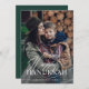 Esta simple y elegante tarjeta de Janucá dice "Feliz Janucá" en una mezcla de texto moderno en negrita y caligrafía clásica, sobre una superposición de foto sobre su foto familiar favorita. La parte posterior de la tarjeta es de un color verde esmeralda oscuro.