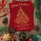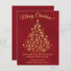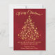 Tarjeta Festiva Feliz Navidad! Árbol de luces doradas sobre rojo e