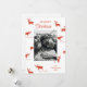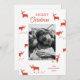 Tarjeta fotográfica "Feliz Navidad" con un patrón de renos de bosques rojos para las vacaciones de invierno. Por favor, contáctame si necesitas artículos adicionales.