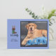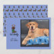 Personaliza esta divertida y ingeniosa tarjeta de foto plana para las fiestas. Coloca tu propia foto personal/familiar (o la de tu dulce perro). Esta tarjeta azul presenta mi ilustración original, dibujada a mano y caprichosa, de un adorable dachshund con una bufanda verde y cuernos de reno. Debajo, en letra a mano, dice "Feliz Navidog". Personaliza tu propio saludo y pon tu nombre. En la parte posterior hay un patrón coordinado y repetitivo de dachshunds disfrazados de renos. Esta es una tarjeta divertida y sencilla para celebrar tu amor por los perros.