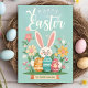 Esta bonita tarjeta de Pascua presenta colores pastel de verde, rosa, amarillo y azul con las palabras "Feliz Pascua" en un guión decorativo sobre un conejo blanco que sostiene tres huevos de Pascua decorados en medio de una variedad de flores de color pastel con las palabras "A todos" debajo. Personalice personalizando el mensaje dentro y/o agregando sus nombres - también puede dejar estos campos en blanco si desea agregar un mensaje manuscrito o firmas más adelante.