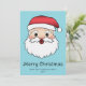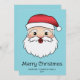 El original ilustracion personalizado de Destei de una feliz cabeza de Papá Noel. El Santa lleva puesto un gorra rojo y blanco, tiene una barba blanca esponjosa y su expresión en la cara es alegre. El color de fondo es azul. También hay dos áreas de texto personalizables.