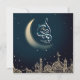 Tarjeta Festiva Feliz Ramadán Mubarak Crescent Mosque Azul
