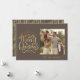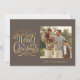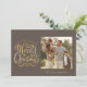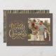 "Te deseamos una Feliz Navidad" en falso oro y marrón. Añade tu imagen familiar. Cambia a tu nombre y qué hermosa tarjeta de vacaciones. El oro marrón y falso es tan elegante.