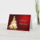 Tarjeta de saludo navideña con fondo rojo vibrante con nevadas, oro y árbol blanco. ¡Añade tu saludo personal!