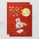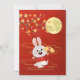 Celebre la magia del Festival de Mediados de Otoño con esta elegante carta que presenta una luna llena radiante, farolillos tradicionales y un conejo dorado ilustrado con brillantes detalles de efecto Relieve metalizado. Este diseño lujoso, ubicado en un cielo nocturno profundo, captura el espíritu de la reunión, las bendiciones y la prosperidad. Perfecto para enviar cálidos deseos a la familia, amigos y colegas durante el Festival de la Luna China. Personalice el texto en el interior o en la parte posterior para que sea verdaderamente suyo. También disponible como descarga digital.
