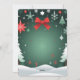 This festive Christmas design features a bright red bow, hanging ornaments, snowflakes, and snowy pine trees on a deep green background. The center area is perfect for adding custom text like “Merry Christmas”, “Happy Holidays”, “Season’s Greetings”, “Winter Wonderland”, or personalized names and messages. Ideal for holiday cards, posters, invitations, and gifts.