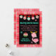 This cute and fun holiday card can be personalized with a family name or title. It features an adorable flamingo in reindeer antlers on a pink and red plaid background. The text combines sans serif fonts for a stylish and modern look. Winter snowflakes and patterned baubles add a festive touch.