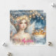 Festive gold watercolor ethereal frost snow angel. Your custom name is written in a pink hand lettered script.