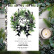 Elegant nostalgic watercolor black and white gingham check beribboned pine and berries holiday wreath "Christmas Party" design with coordinating back pattern design.