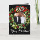 Tarjetas de felicitación de feriado de Trump Navidades 2020. 2019 fue un gran año para el presidente Trump y su agenda estadounidense. Celebra con esta sofisticada, elegante y elegante, hermosa y vintage carta de Navidades de coronas con flores de guerra en rojo y verde con la foto del presidente Trump y la primera dama Melania Trump desde la bola de inauguración. Celebra a los Navidades con esta tarjeta de felicitación especial y patriótica para un simpatizante de Trump o un patriota