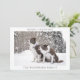 Trae la tranquilidad de la temporada a sus saludos de vacaciones con esta carta de Navidades de invierno. Dos perros se sientan en silencio en la nieve, rodeados por la quietud de un día de invierno carpintero. La parte delantera incluye "Feliz Navidad" en letras clásicas, con espacio para el nombre de su familia debajo. Perfecto para los amantes de la naturaleza, los propietarios de mascotas y todo aquel que aprecie una expresión tranquila y sincera de las vacaciones. Añade fácilmente tu propio apellido para hacerlo personal.