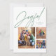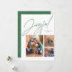 Esta tarjeta de Navidades de la familia incluye un gran guión moderno "alegre" encima de un collage de tres fotos. La variedad de formas y tamaños son perfectos para mostrar los momentos más destacados del año o lo mejor de la sesión de fotos de la familia. El color verde claro se combina con el dorso de la tarjeta de vacaciones, que también tiene un divertido patrón de estrellas y puntos blancos. Esta moderna tarjeta fotográfica única de vacaciones seguro que llevará sonrisas a amigos y familiares.