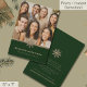 Elegante tarjeta de vacaciones de One Photo Business de color verde oscuro y dorado. La tarjeta de felicitación de vacaciones de negocios de estilo clásico cuenta con una foto del equipo de personalizable con acentos de color verde oscuro y oro. Diseño elegante y elegante. Al revés, hay un copo de nieve dorado con sentidos saludos de vacaciones o felicitaciones para colegas y socios.