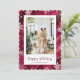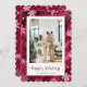 Hermosa tarjeta de festividad con fotos rojas con copos de nieve, estrellas y nevadas sobre un falso fondo de Relieve metalizado rojo. Personaliza fácilmente esta tarjeta de vacaciones con fotos con tu foto y texto.