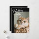 Cuidada y divertida tarjeta de plantilla de fotos para Navidades de vacaciones para propietarios de gatos con un texto escrito a mano con corazones que dice "Patesitive Festive" con una foto de tu gatito. El fondo es negro.