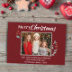 Tarjeta navideña de fotos de la familia Red Festive Merry Christmas. Una foto familiar personalizado. Añade tu foto y personalizar el texto en la tarjeta.