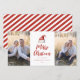 Sombrero Santa de la acuarela festiva, tarjeta fotográfica de vacaciones. Características, tipografía roja con soporte de rayas coordinadas.