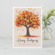 Envíe sus cálidos deseos de Acción de Gracias con esta hermosa tarjeta de vacaciones, que presenta una vibrante exhibición de hojas de árboles otoñales en ricos colores otoñales. Perfecto para capturar la esencia de la temporada, esta carta combina la belleza de la naturaleza con un ambiente acogedor y festivo. Personaliza el texto frontal con tu propio mensaje y elige un color de fondo que coincida con tu estilo, haciendo que esta tarjeta sea la tuya única. Ideal para enviar gratitud y alegría por las vacaciones a sus seres queridos, esta tarjeta de Acción de Gracias de personalizable seguramente causará una impresión duradera.