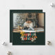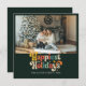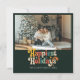 Envía alegría festiva con esta tarjeta retro de colores "Festividades más felices". Con su atrevida tipografía de inspiración vintage y su foto familiar favorita junto al árbol, combina el encanto juguetón con el acogedor calor de las vacaciones. Perfecto para las familias que desean compartir sus deseos de vacaciones de forma alegre y elegante.