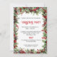 Un bonito marco de bayas rojas, pinecones y ramos de pino contiene tu información. Una mezcla de fuentes elegantes completa la imagen.