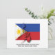 Elegante tarjeta patriótica feliz Día de la Independencia con TEXTO de PERSONALIZABLE para celebrar el Día de la Independencia Filipina el 12 de junio. El diseño muestra el esquema del mapa filipino en efecto 3D sobre la bandera de Filipinas. Debajo hay un texto de personalizable que dice MALIGAYANG ARAW NG KALAYAAN. También puede personalizar el mensaje en la parte posterior. Hay regalos coincidentes disponibles.