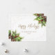 Tarjeta Festiva Fir Cones Holly Red Berries White Gold
