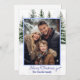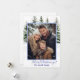 Holiday photo card is shown with a holiday mix of snowcapped fir trees and barely-there snowflakes with a greeting from your family.