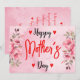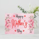 Tarjeta de felicitación personalizada del Día de la Madre con flores modernas. "Feliz Día de la Madre" se muestra en la parte frontal en caligrafía moderna con flor de rosa en acuarela y corazones. El interior de la tarjeta del Día de la Madre muestra tu mensaje mecanografiado o manuscrito.