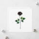 Rosa negro simbólico, dibujado de forma artística, con tallos verdes y hojas sobre fondo blanco. Rosa negro.