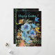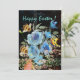 Tarjeta Festiva Floral Azul Pascua Negra con Pájaros