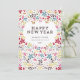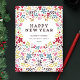Tarjeta Festiva Floral de Año Nuevo feliz colorido
