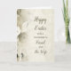 Feliz Pascua para tu amigo y su esposa saludando con flores de jardín blancas.