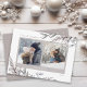 Esta elegante tarjeta de Navidades ofrece 2 fotos acentuadas con botánicos de vacaciones tostadas y grises sobre un fondo de color blanco. El saludo dice "Amor y risas".