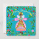 Una tarjeta de felicitación navideña alegre y moderna que presenta un ángel inspirado en el arte popular rodeado de patrones florales festivos. Este dulce angelito de Navidad está vestido para una vibrante celebración navideña. Su tarjeta se imprimirá en el papel de su elección. Personalizable con su texto en la parte delantera y trasera. Haga que esta tarjeta sea especial con su propio mensaje personal.