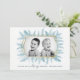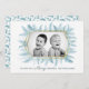 Follaje perenne invernal acuarela azul abeto plantilla de tarjeta de foto de Navidad. Personalice con el nombre de su familia y su foto. Arte original de acuarela de Sarah Trett.