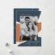 Diseño vacacional moderno con formas abstractas pintadas en la marina y roya con fondo color crema. La palabra "Merry" se muestra en un guión de caligrafía elegante y blanco. Personaliza la tarjeta de vacaciones abstracta añadiendo tu apellido y una foto favorita. La tarjeta se revierte al fondo de un pincel marino.