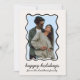 Esta tarjeta de vacaciones moderna es la manera perfecta de desear a tus seres queridos una feliz Navidad y felices fiestas! Caprichosa y divertida, el borde funky con ondas enmarca la foto de tu familia. La parte trasera tiene espacio para un mensaje de vacaciones personalizado de tu familia. • ¿Buscas algo un poco diferente? ¡Envíanos un mensaje o correo electrónico a stuffbystuff.shop@gmail.com para diseños personalizados!