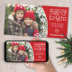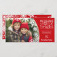 Que tus días sean amargos y brillantes - Personalizar esto con tarjeta contemporánea con 1 foto horizontal y el nombre de tu familia. El diseño es sencillo, con copos de nieve y fondo rojo. Que tus días sean alegres y brillantes