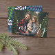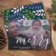 Hojas botánicas verdes y patrón de bayas en la espalda. Utilice una imagen con el sujeto preferiblemente en el centro o hacia arriba. Una foto más oscura funciona mejor con este overlay de tipo blanco. Haz un exclusivo y moderno saludo de Navidad con un toque de moda y alegre en la parte trasera.