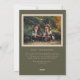 Esta tarjeta de foto de Acción de Gracias combina elegancia y calidez, lo que la convierte en la manera perfecta de expresar gratitud durante la temporada de fiestas. La parte delantera de la tarjeta contiene una sola foto muy apreciada, enmarcada por un borde verde oliva adornado con hojas de otoño y acentuada con detalles falsos de Relieve metalizado de oro. La palabra "Agradecimiento" se sienta elegantemente en la parte superior de la foto con un tipo de letra manuscrita, añadiendo un toque personal y sincero al diseño. Los ricos tonos otoñales y los lujosos detalles crean una carta que es a la vez festiva y refinada. En la parte trasera, la tarjeta ofrece espacio para una segunda foto, lo que permite compartir momentos aún más especiales con sus seres queridos. Esta foto adicional proporciona una manera maravillosa de resaltar los recuerdos del año, mientras que el espacio que lo acompaña para un mensaje corto le permite transmitir su más sincero aprecio y deseos de Acción de Gracias. Ya sea que elija compartir un mensaje de gratitud o un simple saludo de vacaciones, la parte trasera de la tarjeta ofrece un equilibrio cuidadoso entre elementos visuales y escritos. Esta tarjeta de foto del Día de Acción de Gracias está diseñada para ser un regalo que los amigos y la familia apreciarán. La combinación del borde verde oliva, las hojas de otoño y los detalles falsos de Relieve metalizado dorado crea un diseño atemporal y elegante que captura perfectamente la esencia de la temporada. Tanto si se exhibe en un mantel como si se mantiene como un recuerdo, esta tarjeta es una hermosa manera de celebrar el espíritu de gratitud y la alegría del Día de Acción de Gracias.