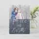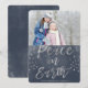 Tarjeta de Navidad con foto de acuarela azul y plata Paz en la Tierra. La imagen y el nombre de la familia se pueden reemplazar en la tarjeta de Navidad de acuarela azul índigo y plata Paz en la Tierra.