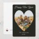 Envía tus felicitaciones de Año Nuevo con esta foto, tarjeta personalizable, que incluye una plantilla de foto con forma de corazón, con tipografía moderna que dice "Feliz Año Nuevo" en blanco sobre un fondo casi negro.