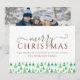 Carta de vacaciones moderna con árboles de Navidad y un conjunto de saludos de vacaciones en una elegante tipografía de Borgoña. Personalice añadiendo su nombre y foto especial al reverso. Diseñado por Thisisnotme©