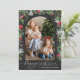Tarjeta Festiva Foto de arco botánico Chic Gris Oscuro Felices Fie