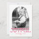Cuta tarjeta de fotos de vacaciones con tu foto vertical dentro de un marco de arco blanco. "Alegre" se muestra con letras retro rosadas y divertidas con su nombre y el año que se muestra a continuación. La tarjeta de Navidades retro se invierte para mostrar un patrón de rayas diagonales rosa y blanca.